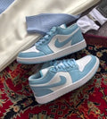 مزيج أنيق يجمع بين الأزرق والأبيض ليمنحك إطلالة عصرية، نظيفة ومنعشة تناسب كل الأوقات.