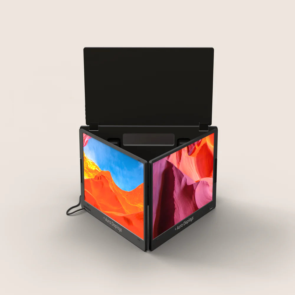 3 شاشات عالية الدقة: استمتع بصورة واضحة ومشرقة على ثلاث شاشات IPS بحجم 14 بوصة مع دعم HDR لتعدد المهام بسهولة.