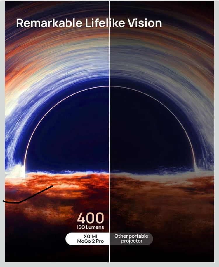 💡 400-430 ISO Lumens Brightness — سطوع مثالي للمشاهدة داخل المنزل أو أثناء السفر.